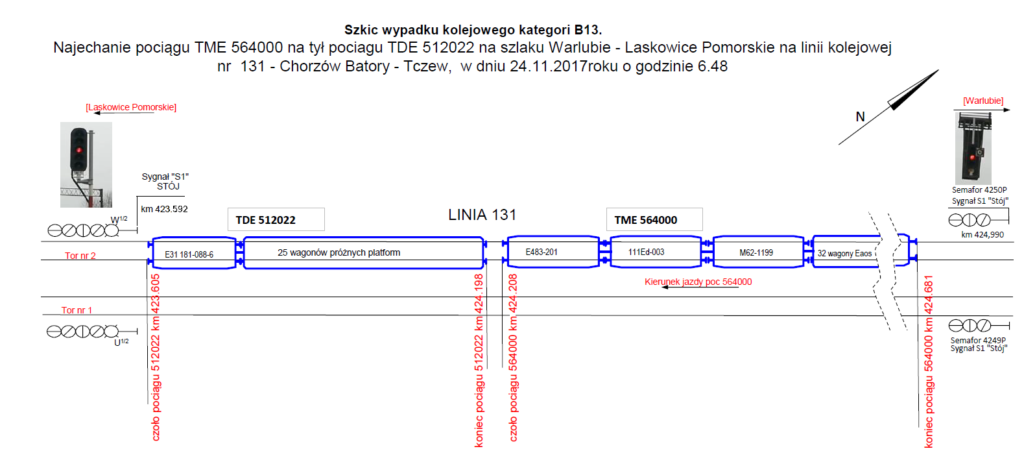 z badania wypadku kategorii B13 zaistniałego w dniu 24 listopada 2017 r. o godzinie 06:48 szlak Warlubie – Laskowice Pomorskie, tor nr 2, w km 424.208, linii kolejowej nr 131 Chorzów Batory – Tczew „PKBWK stwierdza brak kamer rejestrujących obraz szlaku na pojazdach przewoźnika POL-MIEDŹ TRANS Sp. z o. o. oraz LOTOS Kolej Sp. z…